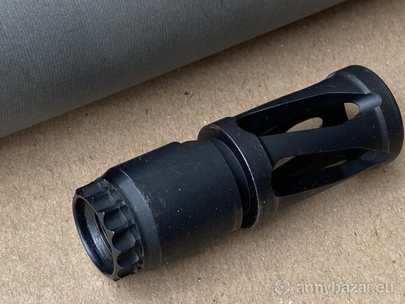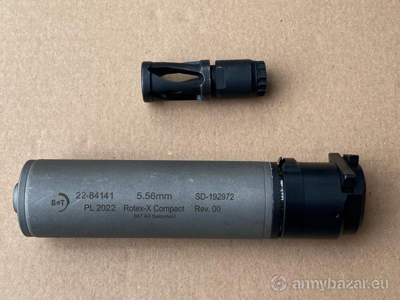 Opis: Tłumik B&T Rotex-X Medium do AR (5,6mm /gwint 1/2x28) prawie nowy, zakładany ale nie strzelany jak widać na foto. Bardzo fajny system mocowania na dedykowanym kompensatorze/ urządzeniu wylotowym typu Birdcage A2.