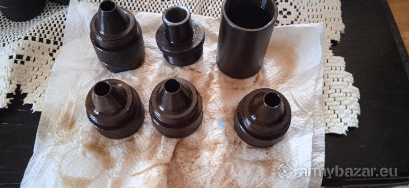 Opis: Przedmiotem sprzedaży są tłumiki w pełni stalowe o otworze przelotowym 10 mm. Tłumik modułowy możliwość wydłużenia lub skrócenia. Zestaw widoczny na zdjęciach, ale można dokupić moduły. Dostępne dwa gwinty 1/2-28 UNF i 5/8-24 UNF. Pierwszy standardowy dla wszystkich AR w kalibrze 223 a drugi to standard dla ARów .308. Dodatkowo gwint 5/8-24 umożliwia wkrecenie wielu redukcji np. M14x1L czyli gwint stosowany w AK. W razie wątpliwości proszę pytać.