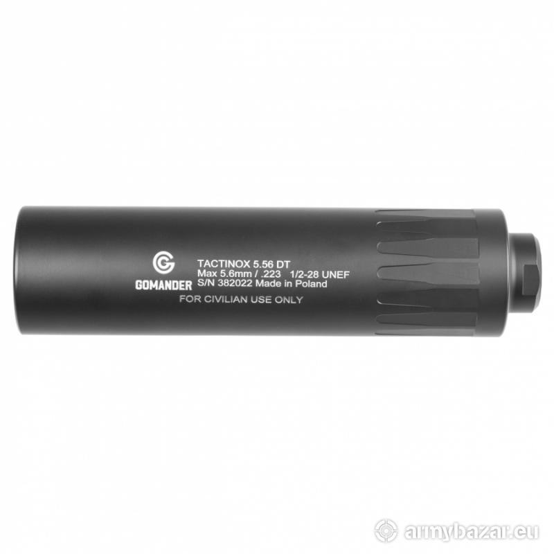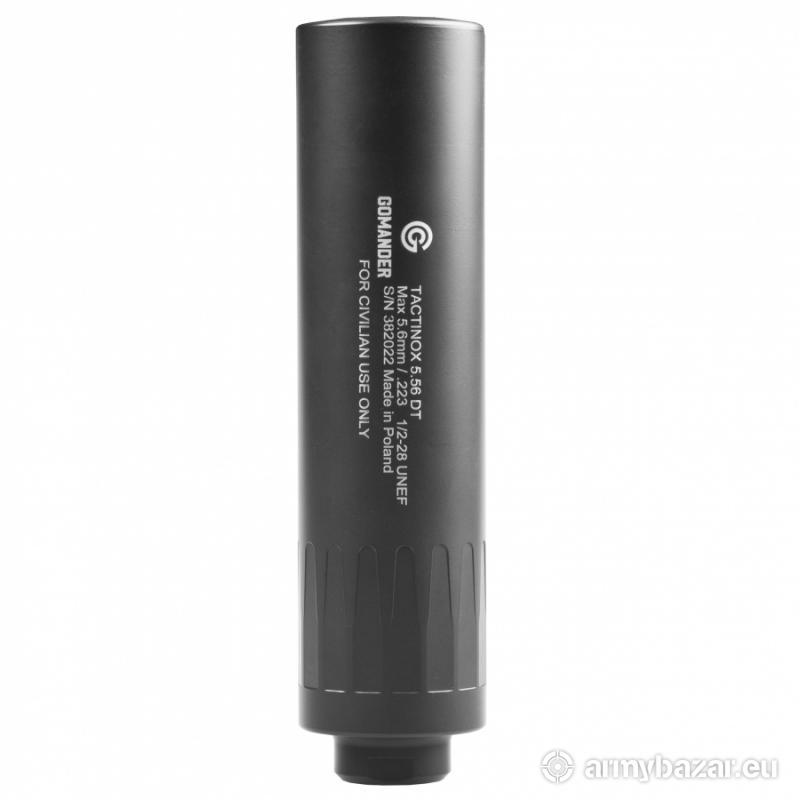 Opis: Kaliber .223 Remington Tłumik dźwięku Gomander Tactinox 5.56 DT oferuje użytkownikowi Bardzo dobrą skuteczność tłumienia pozwalającą na redukcje hałasu o niecałe 30 dB Konstrukcję ograniczającą powrót gazów prochowych do komory zamkowej Wykonanie ze stali nierdzewnej Monocore gwarantujące odporność i trwałość Skuteczne działanie nawet podczas prowadzenia intensywnego, rytmicznego ognia Odczuwalną redukcję odrzutu broni oraz podmuchu generowanego podczas strzału Wykończenie powierzchni przy użyciu niezwykle trwałej powłoki ceramicznej Cerakote Prosty montaż bezpośrednio na gwint karabinka - w tym wypadku 1/2x28 725-000