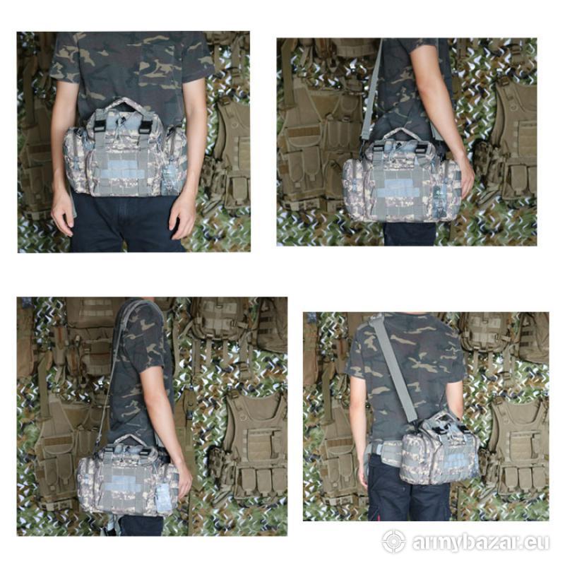 Opis: Mamy dzisiaj do zaoferowania torbę taktyczną, wojskową, militarną, turystyczną, na aparat, telefon, dokumenty, narzędzia i inne. Przedmiotem Naszej aukcji jest TORBA taktyczna, MILITARNA na ramię, do ręki lub na biodra w kolorze CZARNYM. IDEALNA do przechowywania aparatu, dokumentów, książek, telefonu, kluczy, latarki, narzędzi, na strzelnicę, do warsztatu czy pracy. Przyda się podczas wycieczek, wędkowania, na grzybach czy też codziennych obowiązków w mieście. PARAMETRY NASZEJ TORBY: Pojemność : 6 litrów Wymiary : 19 cm x 22 cm x 11cm Waga: 300 g Materiał: poliester 600D Długość pasa: do 120 cm JESTEŚMY LEGALNIE DZIAŁAJĄCĄ FIRMĄ - wystawiamy paragony / faktury VAT !