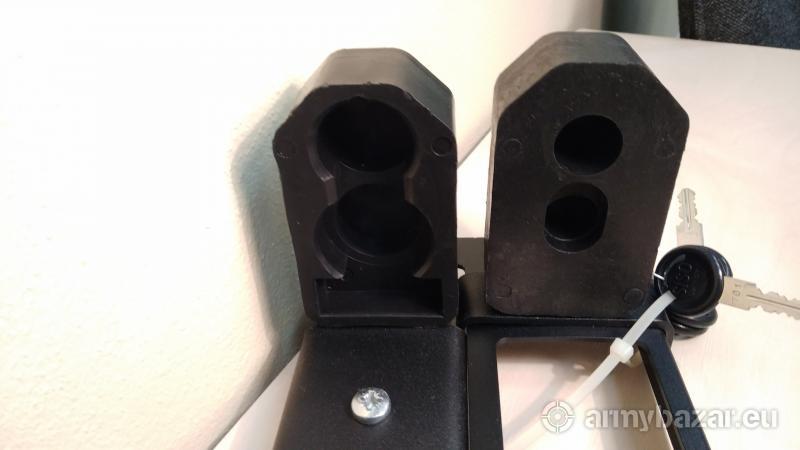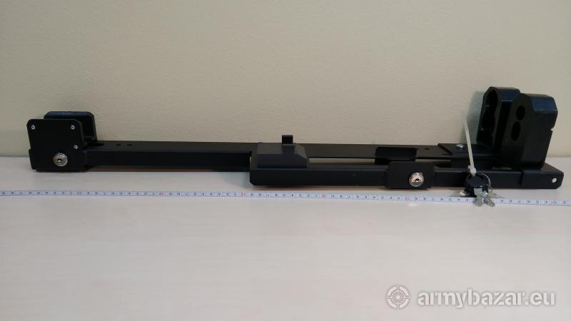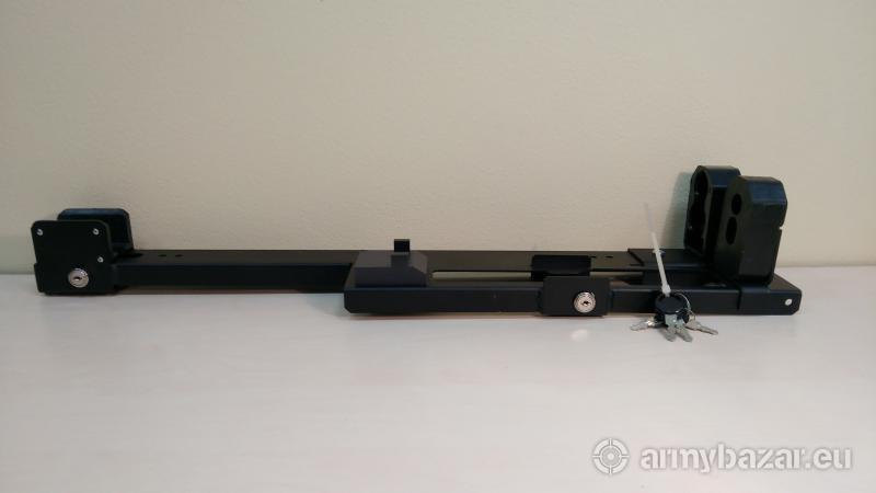 Opis: Nowy uchwyt samochodowy na dwie jednostki broni długiej. Np. Mossberg i kbkAK. Komplet śrub. Zamykany na klucz.
