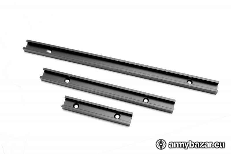Opis: Szyny akcesoryjne UIT, Anschutz. Aluminiowe, lakierowane. Długości: 10 cm, 20 cm, 30 cm. Cena 10cm-50zł, 20cm-70 zł, 30 cm-100zł Szerokość zewnętrzna 18mm, wysokość 9,7mm