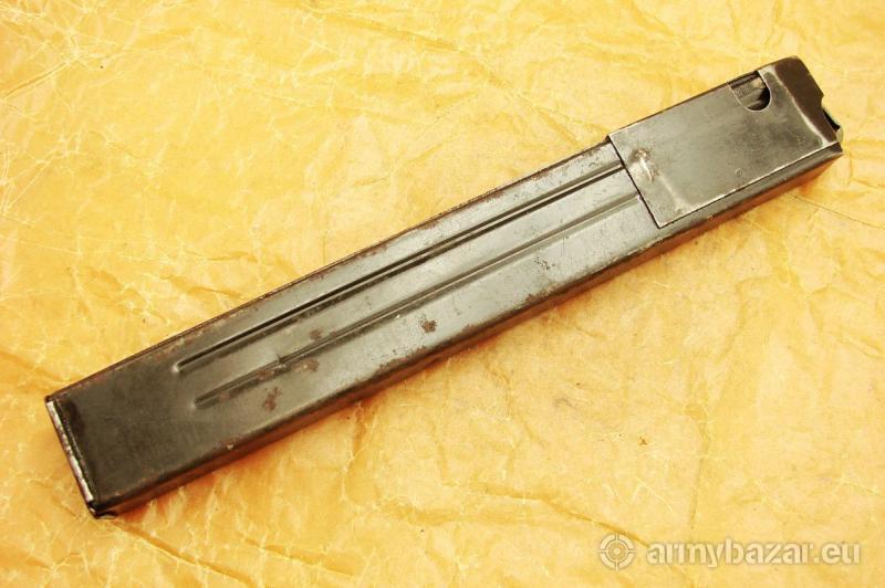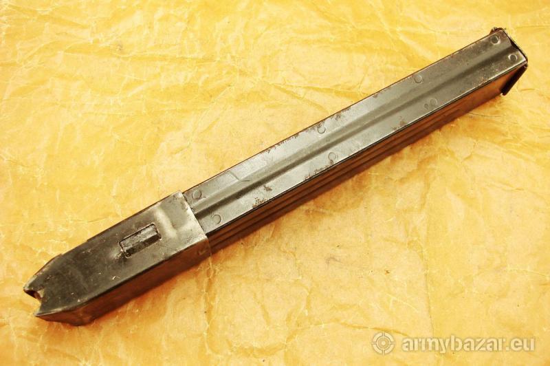 Opis: Przedmiotem ogłoszenia jest oryginalny belgijski 32 nabojowy magazynek do pistoletu maszynowego VIGNERON M1 i M2 zwanym również VIG kal. 9x19 mm Parabellum Para Luger. Magazynek wzrowany na magazynku niemieckim do MP40, MP38 i MP41, różni się stopką sygnaturami i jest lekko grubszy, ale da się go dopasować do MP40. Stan widoczny na zdjęciach, sprzedaję prezentowany egzemplarz. (y-272) Cena 200 zł, wysłka 18 zł paczkomat inPost lub 15 zł kurierem pocztex48. Nie wysyłam za pobraniem.