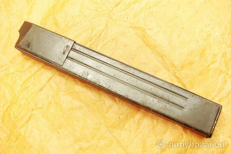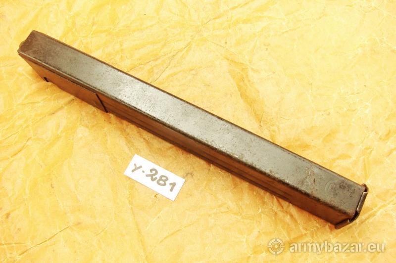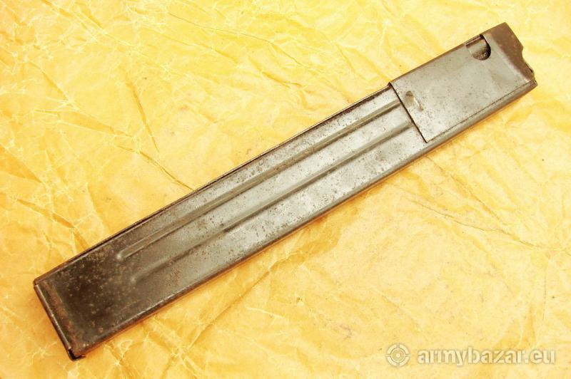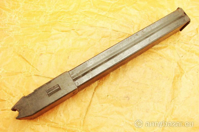 Opis: Przedmiotem ogłoszenia jest oryginalny belgijski 32 nabojowy magazynek do pistoletu maszynowego VIGNERON M1 i M2 zwanym również VIG kal. 9x19 mm Parabellum Para Luger. Magazynek wzrowany na magazynku niemieckim do MP40, MP38 i MP41, różni się stopką sygnaturami i jest lekko grubszy, ale da się go dopasować do MP40. Stan widoczny na zdjęciach, sprzedaję prezentowany egzemplarz. (y-281) Cena 200 zł, wysłka 18 zł paczkomat inPost lub 15 zł kurierem pocztex48. Nie wysyłam za pobraniem.