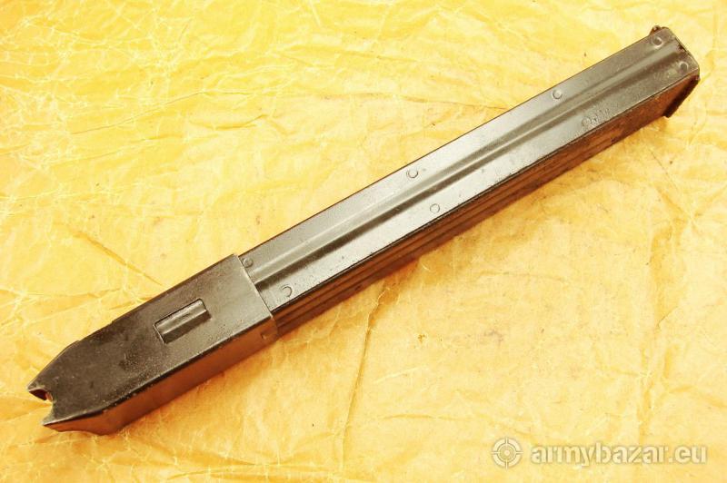 Opis: Przedmiotem ogłoszenia jest oryginalny belgijski 32 nabojowy magazynek do pistoletu maszynowego VIGNERON M1 i M2 zwanym również VIG kal. 9x19 mm Parabellum Para Luger. Magazynek wzrowany na magazynku niemieckim do MP40, MP38 i MP41, różni się stopką sygnaturami i jest lekko grubszy, ale da się go dopasować do MP40. Stan widoczny na zdjęciach, sprzedaję prezentowany egzemplarz. (y-284) Cena 200 zł, wysłka 18 zł paczkomat inPost lub 15 zł kurierem pocztex48. Nie wysyłam za pobraniem.