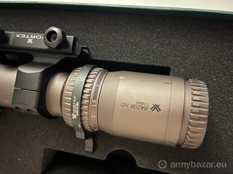 Opis: Luneta celownicza Vortex Razor III HD 1-10x24 FFP 34 mm AO EBR-9 MRAD + montaż Vortex Viper Extended Cantilever 34 mm Koszt nowej lunety 12 099,00 zł Nowy Montaż 729 zl Luneta używana sporadycznie na strzelnicy. Mam małe przetarcie warstwy lakieru widoczne na zdjęciu. Jest w 100% sprawna. kontakt 574377772 - Adam