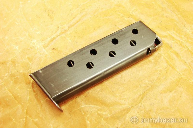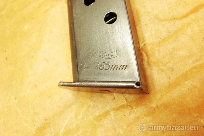 Opis: Przedmiotem ogłoszenia jest oryginalny 8-mio nabojowy magazynek do pistoletów WALTHER PP kal. 7,65 mm Browning 32 acp. Pasuje również do MANURHIN PP, posiada nowszy typ szczęk. Stan zachowania widoczny na zdjęciach, sprzedaję prezentowany egzemplarz. (y-141) Cena 300 zł, wysłka 18 zł paczkomat inPost lub 15 zł kurierem pocztex48. Nie wysyłam za pobraniem.