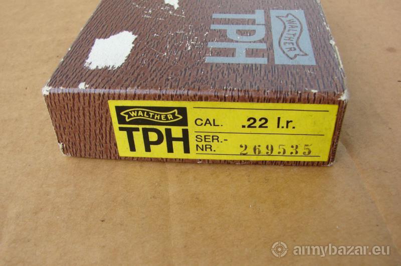 Opis: Przedmiotem sprzedaży jest oryginalne, kartonowe, fabryczne pudełko do pistoletu Walther TPH kal. 22 lr 5,6 mm. Stan widoczny na zdjęciach, sprzedaję prezentowany egzemplarz. Cena 200 zł, wysyłka 15 zł (paczkomat InPost lub kurier Pocztex48). Nie wysyłam za pobraniem.