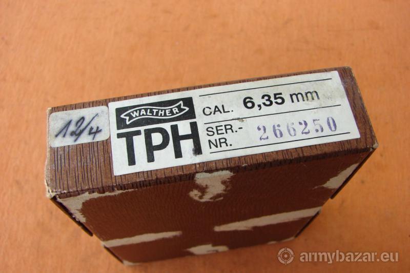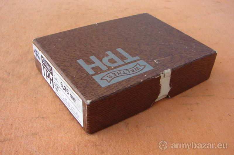 Opis: Przedmiotem sprzedaży jest oryginalne, kartonowe, fabryczne pudełko do pistoletu Walther TPH kal. 6,35 mm Browning. Stan widoczny na zdjęciach, sprzedaję prezentowany egzemplarz. Cena 150 zł, wysyłka 15 zł (paczkomat InPost lub kurier Pocztex48). Nie wysyłam za pobraniem.