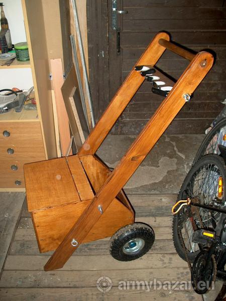 Opis: Wykonam/Sprzedam wózek do przewożenia broni. Wózek jest bardzo przydatny na zawodach, w stojaku mieści się 5szt broni długiej. W skrzynce można przechowywać amunicję ,broń krótką i inne szpeje. Materiał : sklejka wodoodporna , lakierowany lako bejcą, koła gumowe pompowane. Na czas transportu ,śruby boczne odkręcamy i rozbieramy, pozostaje skrzynka z kołami. Cena 550zł tel. 508458330