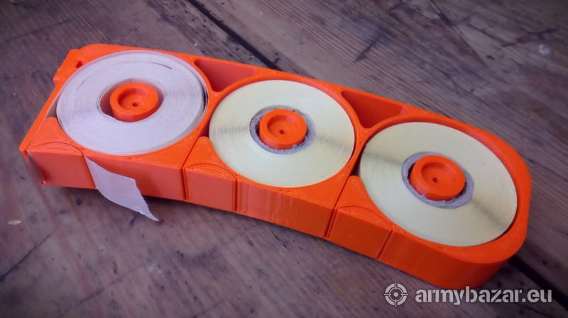 Opis: Zaklejkownik / dyspenser na 3 rolki zaklejek 20mm, projekt oryginalny OmnisArma. Bezbłędnie podaje zaklejki eliminując potrzebę odklejania ich z taśmy, łatwe użycie także w rękawiczkach. Dostępny w kolorze pomarańczowym ("przeciwzgubieniowym") oraz czarnym. Pasuje do ładownic na magazynki AK oraz uniwersalnych, posiada także zawieszkę pasującą do systemu MOLLE. Zobacz niezależną recenzję Frag Out! Magazine: https://youtu.be/q_oGte4XQ1c?si=dtR2fGiIjICOAlBb Zamówienia bezpośrednio na https://omnisarma.com/p/zaklejkownik-dyspenser-do-zaklejek - dobierz zaklejki po 9,99 za rolkę!