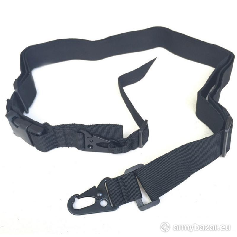 Opis: Wysokiej JAKOŚCI jedno / dwupunktowe zawieszenie taktyczne, pas nośny do broni strzeleckiej, wiatrówek, replik ASG w kolorze CZARNYM. Pasy wykonane z wytrzymałego i odpornego NYLONU oraz metalu. Solidne chwyty oraz wytrzymały pas pozwalają na bezproblemowe i komfortowe przenoszenie broni czy repliki. Możliwość stworzenia dodatkowego punktu zawieszenia na kolbie teleskopowej lub ramowej (jak na zdjęciu poniżej). Zawieszenie posiada regulację długości w zakresie do 135 cm, dzięki czemu można go używać nawet z pełnym wyposażeniem. Możliwość szybkiej zmiany z dwóch punktów zawieszenia do jednopunktowego ! DANE FABRYCZNE: Materiał: nylon Długość pasa: do 135 cm Szerokość: 38 mm.