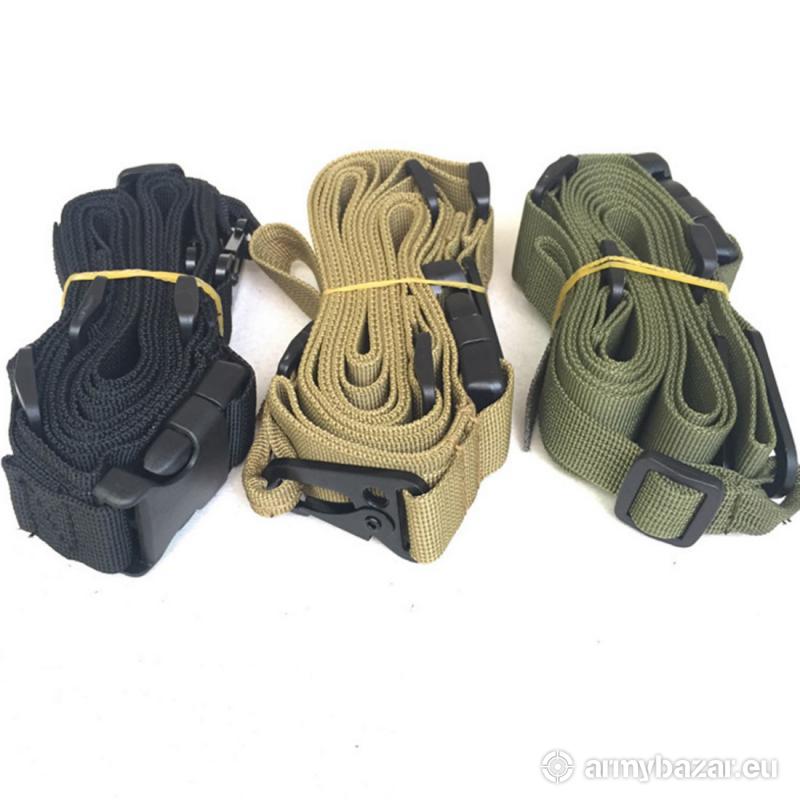 Opis: Wysokiej JAKOŚCI jedno / dwupunktowe zawieszenie taktyczne, pas nośny do broni strzeleckiej, wiatrówek, replik ASG w kolorze OLIV. Pasy wykonane z wytrzymałego i odpornego NYLONU oraz metalu. Solidne chwyty oraz wytrzymały pas pozwalają na bezproblemowe i komfortowe przenoszenie broni czy repliki. Możliwość stworzenia dodatkowego punktu zawieszenia na kolbie teleskopowej lub ramowej (jak na zdjęciu poniżej). Zawieszenie posiada regulację długości w zakresie do 135 cm, dzięki czemu można go używać nawet z pełnym wyposażeniem. Możliwość szybkiej zmiany z dwóch punktów zawieszenia do jednopunktowego ! DANE FABRYCZNE: Materiał: nylon Długość pasa: do 135 cm Szerokość: 38 mm.