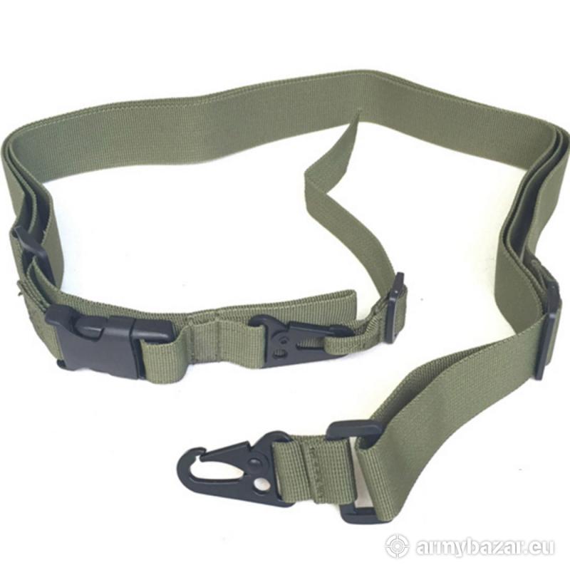 Opis: Wysokiej JAKOŚCI jedno / dwupunktowe zawieszenie taktyczne, pas nośny do broni strzeleckiej, wiatrówek, replik ASG w kolorze OLIV. Pasy wykonane z wytrzymałego i odpornego NYLONU oraz metalu. Solidne chwyty oraz wytrzymały pas pozwalają na bezproblemowe i komfortowe przenoszenie broni czy repliki. Możliwość stworzenia dodatkowego punktu zawieszenia na kolbie teleskopowej lub ramowej (jak na zdjęciu poniżej). Zawieszenie posiada regulację długości w zakresie do 135 cm, dzięki czemu można go używać nawet z pełnym wyposażeniem. Możliwość szybkiej zmiany z dwóch punktów zawieszenia do jednopunktowego ! DANE FABRYCZNE: Materiał: nylon Długość pasa: do 135 cm Szerokość: 38 mm.