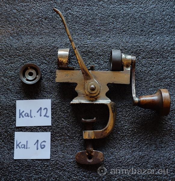 Opis: Na sprzedaż stara zawijarka do elaboracji amunicji śrutowej / kulowej w dwóch kalibrach: 12 GA (12/70, 12/65 itp.) oraz 16 GA (16/70, 16/65 itp.). Urządzenie umożliwia zrolowanie krawędzi łuski, co pozwala na jej zamknięcie. Nadaje się do zawijania tradycyjnych łusek (plastikowych lub papierowych), a także starych łusek typu lefaucheux. Zmiana kalibru polega na zamontowaniu odpowiedniej głowicy zawijającej. Pochodzenie: Francja, koniec XIX lub początek XX wieku. Ciekawe niklowane wykończenie. Wysyłka do paczkomatu lub odbiór osobisty w Warszawie. Jeżeli widzisz to ogłoszenie, to znaczy, że przedmiot jest nadal dostępny.
