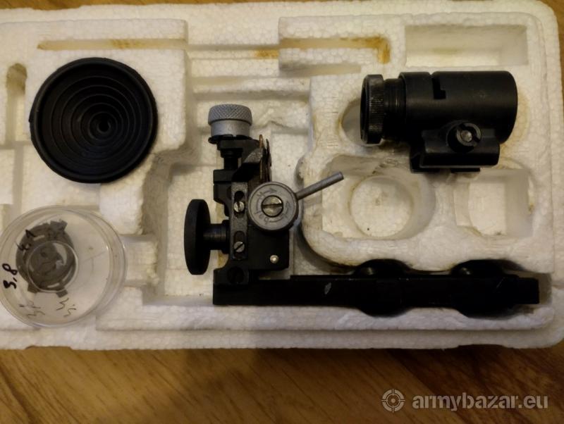 Opis: Sprzedam używany zestaw Anschutza. - 10-cio klikowy diopter na szynę 11mm - muszka tunelowa - gumowa osłona tarczki dioptera - inserty 3,2; 3,4; 3,6; 3,8; 4,1; 4,4mm Przesyłka paczkomatem InPost 17zł.