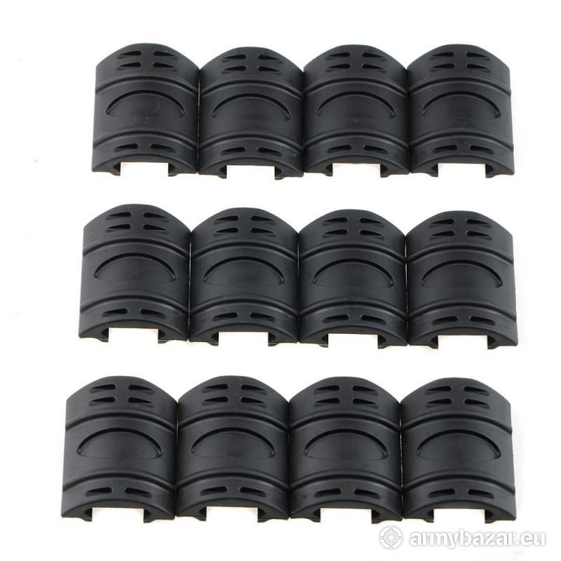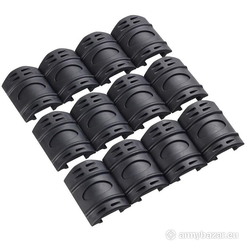 Opis: Zestaw gumowych osłon szyn RIS / Picatinny. Pasują do standardowych szyn o szerokości 20 - 22 mm. Wykonane zostały z wytrzymałej gumy w kolorze CZARNYM. DŁUGOŚĆ (szt.): 35 mm WAGA: 50 g W SKŁAD ZESTAWU WCHODZI 12 OSŁON.