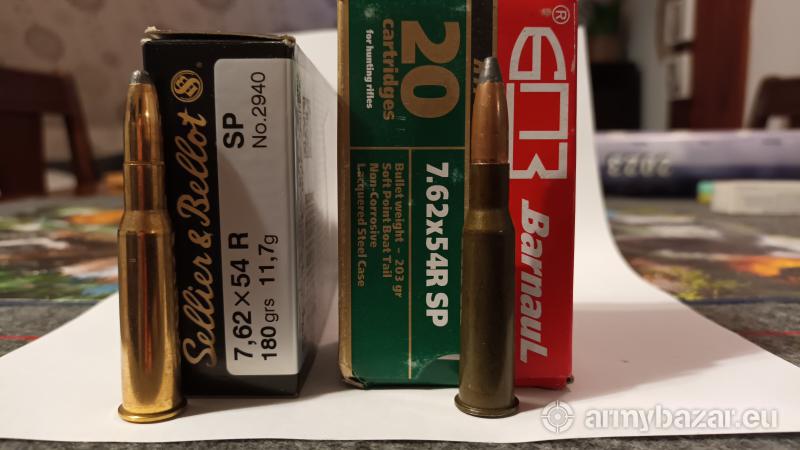 Opis: Odsprzedam amunicję myśliwską 7,62x54R dla osób z odpowiednim upoważnieniem firmy S&B 180gr SP 100szt.,Barnaul 203gr SP 45szt.