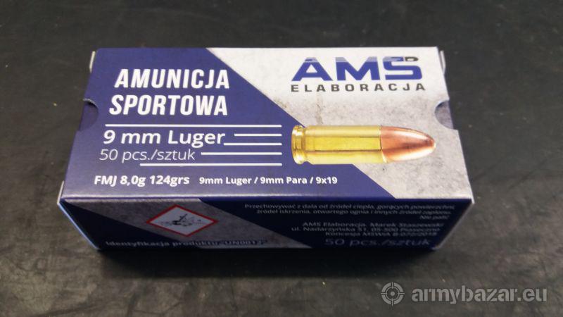 Opis: Sprzedam większą ilość elaborki 9mm Luger. Pocisk 8g/124grs FMJ. Amunicja pakowana w koszyki i kartoniki po 50szt lub w worki po 250szt. Idealna do treningów. Sprzedaż tylko osobom uprawnionym. Na terenie Warszawy możliwy dowóz do odbiorcy