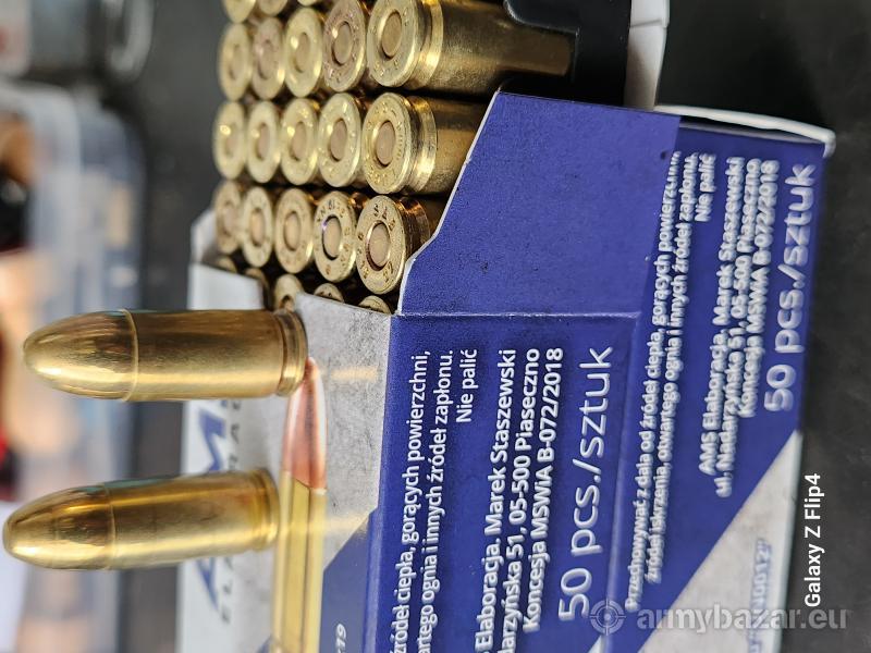 Opis: Sprzedam amunicję elaborowaną w kalibrze 9mm Para. Pocisk FMJ 8g/124grs, łuska mosiężna. Amunicja pakowana w koszyki i kartoniki po 50szt lub w worki po 250szt do wyboru. Minimalna ilość zakupu 1000szt (karton). Zapraszam osoby uprawnione do zakupu. Na terenie Warszawy możliwy dowóz do odbiorcy