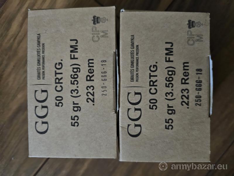 Opis: Sprzedam amunicję GGG .223. 9 paczek po 50szt. Tylko osobie z książeczką z wpisanym kalibrem.