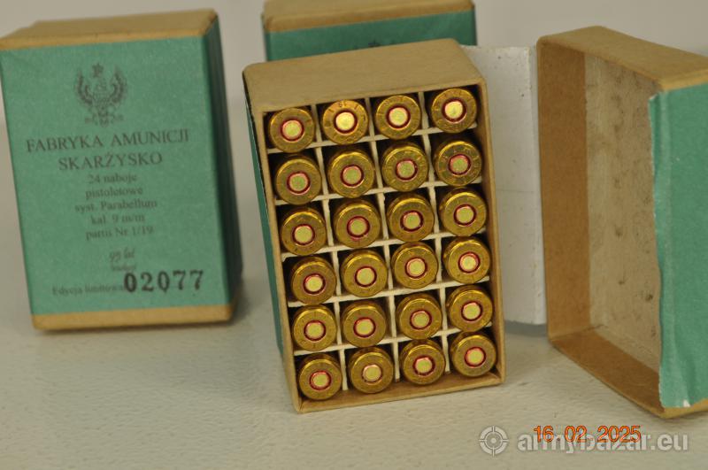 Opis: Oferuję pudełko amunicji okolicznościowej limitowanej na 95-lecie firmy Mesko. Amunicja 9x19mm Para w kartoniku stylizowanym na opakowanie przedwojenne, zawierające 24 sztuki naboi pięknie sygnowanymi m.in. orłem - znakiem przedwojennej fabryki PFA Skarżysko. Pudełko kompletne- NIGDY nie otwierane nie kombinowane- IDEALNE! ZAPRASZAM OSTATNIE SZTUKI Na maila proszę składać propozycję cenowe.