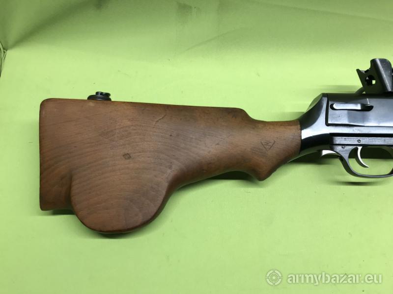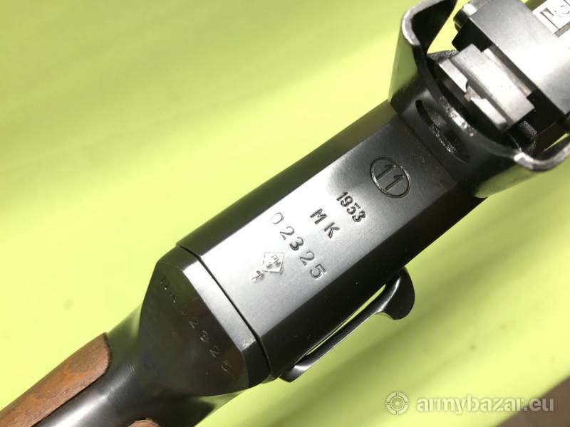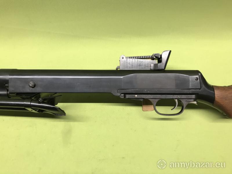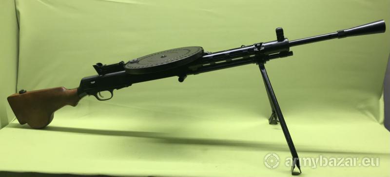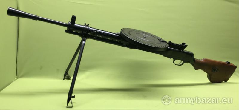 Opis: Karabin samopowtarzalny DP28 skonstruowany przed wybuchem II Wojny Światowej przez radzieckiego konstruktora Wasilija Diegtiariowa. Broń zasilana jest z charakterystycznego magazynka talerzowego, mieszczącego 47 naboi. Broń wykorzystuje energię gazów prochowych odprowadzonych przez otwór w lufie. Strzela z zamka otwartego, ryglowanego za pomocą dwóch symetrycznie rozmieszczonych wahliwych rygli. Broń w stanie idealnym - jak nowa. Zgodna numerycznie. Wyprodukowana w okresie powojennym w Polsce - zakłady FB Radom. Lufa chromowana w stanie idealnym - chrom nienaruszony zarówno od strony korony jak i komory nabojowej. Ten egzemplarz broni pochodzi z naszych prywatnych zasobów.