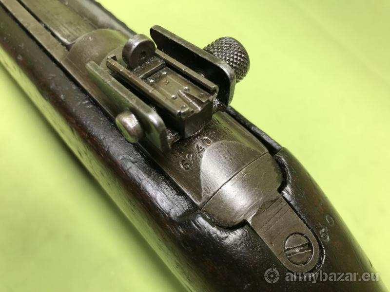 Opis: Przedstawiony na zdjęciach egzemplarz wyprodukowany został przez Inland Manufacturing Division, prawdopodobnie we wrześniu 1944 roku - ta data znajduje się na lufie. Przeszedł powojenny remont, tak jak zdecydowana większość amerykańskiej broni. Karabin znajduje się w stanie dobrym. Osada wyprodukowana w USA z widocznymi oznaczeniami odbioru. Powierzchnie fosfatowane miejscami powycierane. Lufa bardzo dobra, lustro - jest to jedna z ładniejszych luf jakie widzieliśmy w trakcie przeglądania wielu egzemplarzy broni tego modelu. W komplecie z karabinem znajduje się jeden magazynek oraz pas nośny.