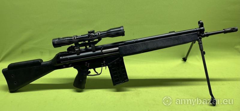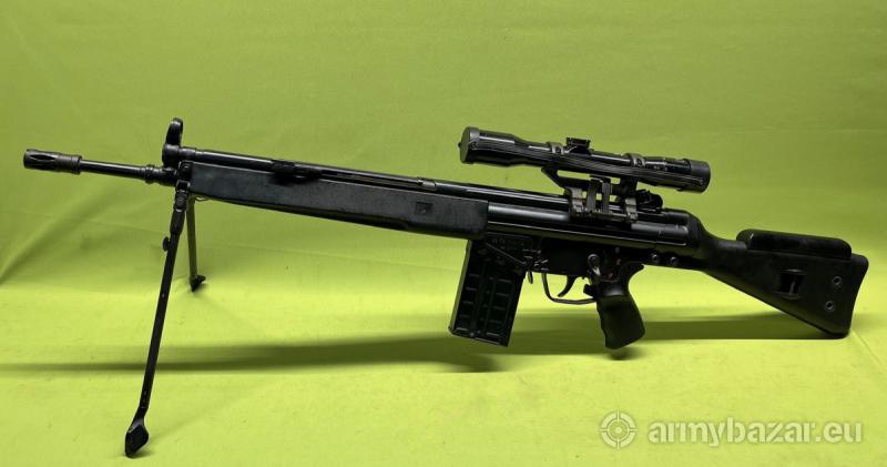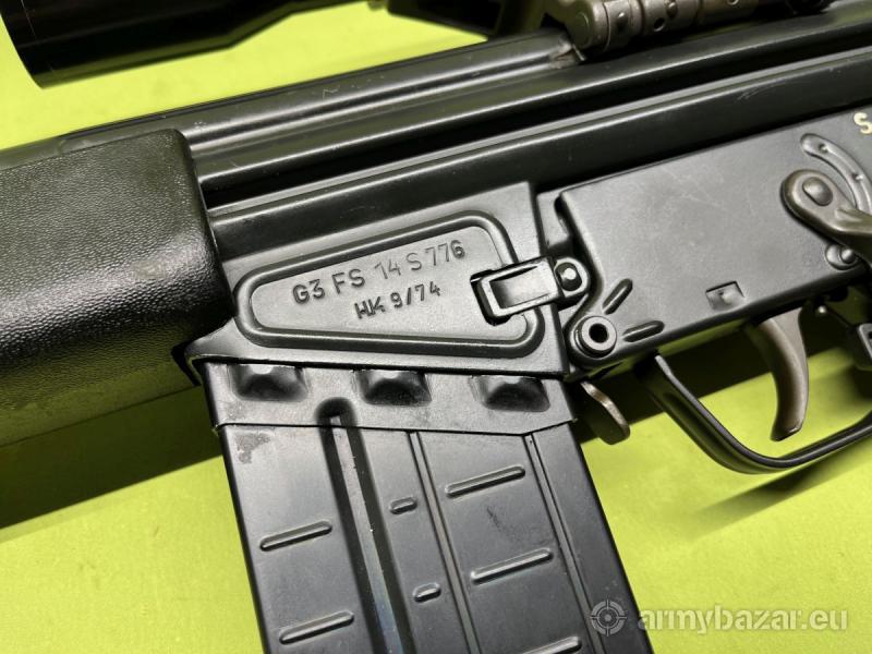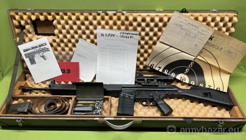 Opis: Sprzedawany egzemplarz został wyprodukowany we wrześniu 1974r. przez Heckler & Koch'a i był na wyposażeniu włoskich Carabinieri. Broń znajduje się w stanie bardzo dobrym, jest zgodna numerycznie włącznie z optyką oraz kufrem. Lufa w stanie bardzo dobrym - lustro. Bardzo ładny stożek przejściowy, po którym widać, że nie była intensywnie użytkowana. Po dokładnym przyjrzeniu można zauważyć jeden czy dwa drobne wżerki/ zmatowienia, kilka centymetrów od wylotu lufy. Nie mają one wpływu na użytkowanie. Optyka w stanie bardzo dobrym, obraz czysty i wyraźny bez brudów, skaz czy mgły. W komplecie zestaw akcesoriów widoczny na zdjęciach.