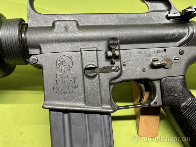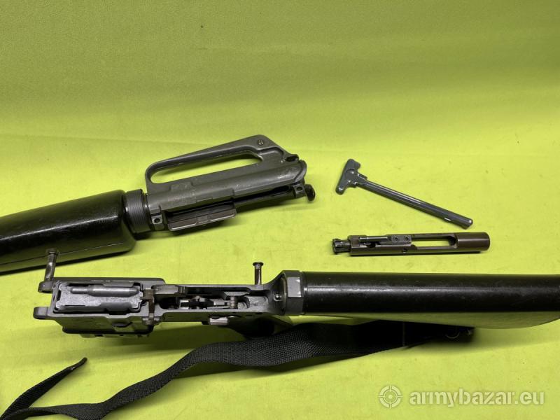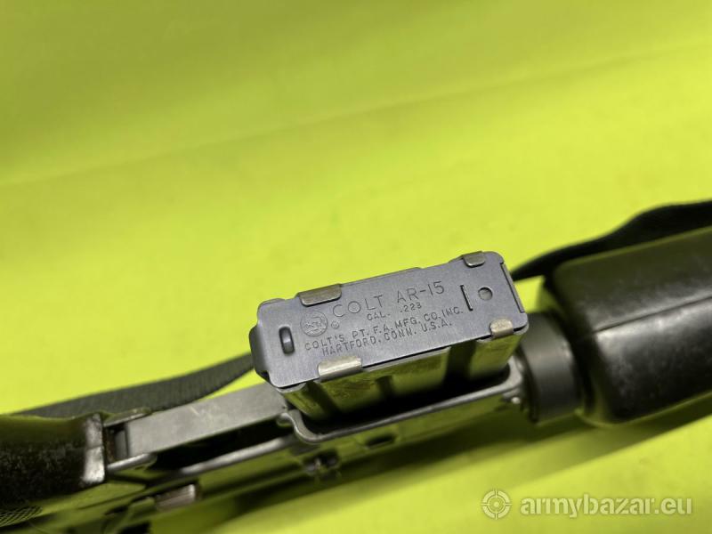 Opis: Karabin samopowtarzalny Colt M16A1 z serii 9 milionów wyprodukowany pomiędzy 1970-1980 r. w ramach kontraktu dla Malezji.Karabin w stanie bardzo dobrym, nieremontowany. Wykończenie - oryginalna parkeryzacja. Okładziny i trzewik kolby mogą posiadać delikatne uszczerbki/ pęknięcia, ale bez większych uszkodzeń. Stan mechanizmów bardzo dobry, lufa idealna - lustro. W komplecie oryginalny magazynie produkcji Colta na 20 nabojów oraz pas nośny.Broń przerobiona na ogień samopowtarzalny z poszanowaniem walorów kolekcjonerskich - obecne wyłącznie oryginalne oznaczenia.