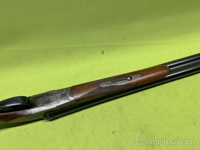 Opis: Strzelba gładkolufowa dubeltówka J. P. Sauer&Sohn Suhl w kalibrze 12/70 wyprodukowana w NRD.Oferowany egzemplarz jest w stanie bardzo dobrym. Na baskili widoczny oryginalna oksyda ogniowa - marmurek. Brak luzów. Lufy idealne - lustro. Czoki Skeet. Muszka światłowodowa. Bepiecznik automatyczny. Chwyt pistoletowy oraz czółenko moletowane. Kolba ozdobiona przez poprzedniego właściciela motywami myśliwskimi.Na terenie Polski dowóz do klienta w cenie.