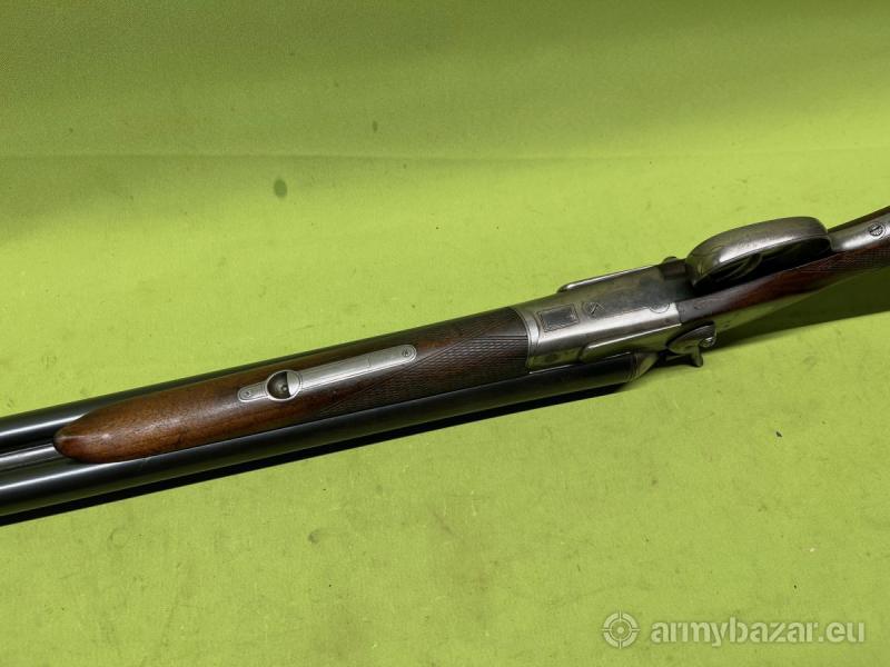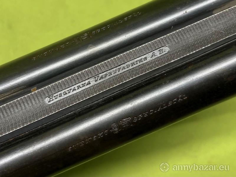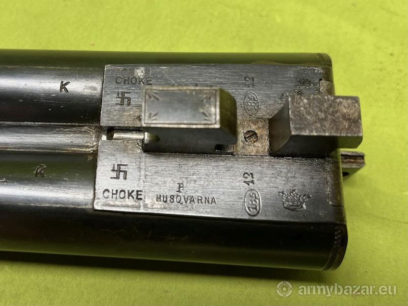Opis: Strzelba dubeltówka kurkowa Husqvarna w kalibrze 12/65 wyprodukowana w Szwecji.Oferowany egzemplarz jest w stanie wizualnie dobrym. Lufy w stanie średnim pełny czok, błyszczące jednak pokryte wżerkami i zmatowieniami. Drewno w stanie dobrym, brak pęknięć. Chwyt pistoletowy i czółenko moletowane. Brak strzemion do pasa.Numer seryjny wskazuje na produkcję z roku 1923, punca K wskazuje, że inspektorem odpowiedzialnym za wykończenie i spasowanie broni był Claes Johansson. Pod czokiem znajduje się podwójny stempel w kształcie swastyki, jest to oznaczenie jakości stali, którego firma Husqvarna zaprzestała używać w okolicach wybuchu II Wojny Światowej. W strzelbie można używać współczesnej amunicji
