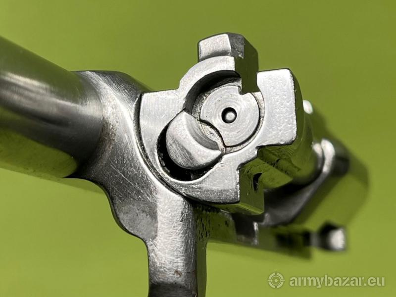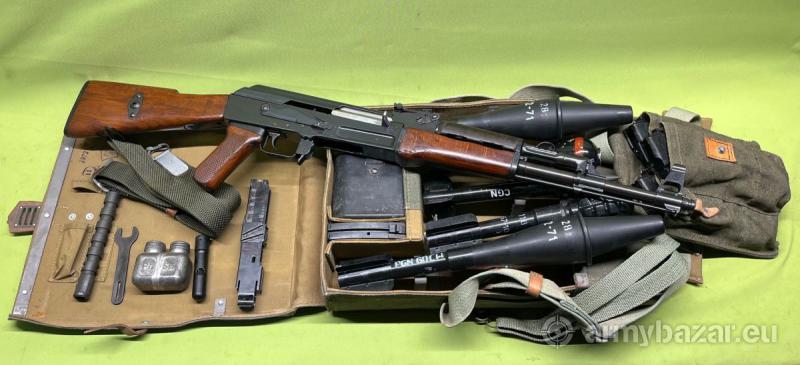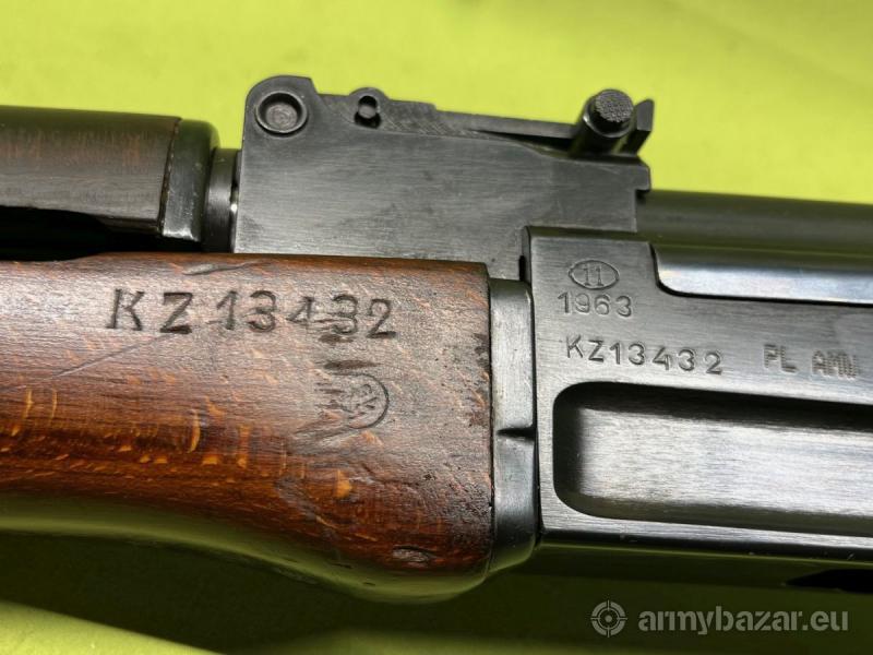 Opis: Przedstawiony na zdjęciach egzemplarz jest w stanie idealnym - nowy. Lufa w stanie idealnym - lustro. Pełna zgodność numeryczna. Karabinek przerobiony z maksymalnym poszanowaniem walorów kolekcjonerskich - brak współczesnych oznaczeń. W komplecie z karabinkiem znajduje się pełne wyposażenie obejmujące: pas nośny, przybornik, ładownicę z 3 magazynkami, olejarkę, torbę do przenoszenia granatów, 5 ćwiczebnych granatów nasadkowych, nasadkę z kluczem do jej montażu, celownik, magazynek na 10 szt. naboi miotających, gumowy amortyzator.