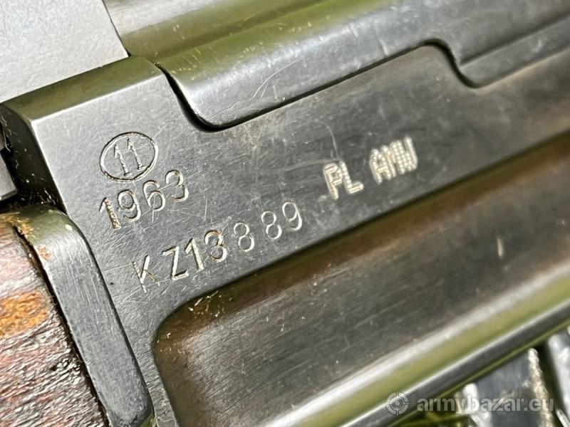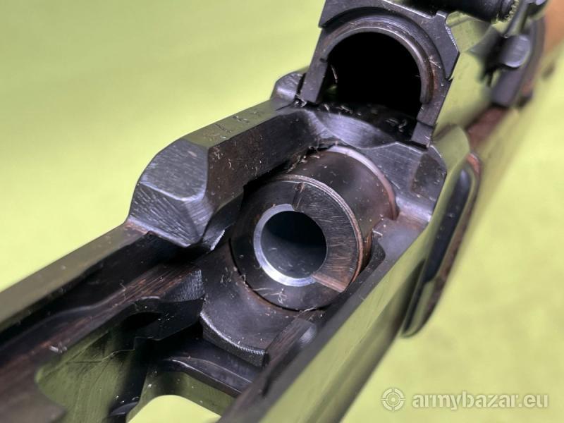 Opis: Przedstawiony na zdjęciach egzemplarz znajduje się w stanie bardzo dobrym. Jest to egzemplarz remontowany, wtórnie oksydowany - używany, jednak kulturalnie. Elementy drewniane zostały wymienione w trakcie remontu - chwyt pistoletowy na bakielitowy, kolbę na zrobioną ze sklejki. Egzemplarz zgodny numerycznie (ramię szczerbinki uzgadniane, łoże bez numeru). Lufa chromowana w stanie bardzo dobrym - ogólnie lustro z nienaruszonymi wylewkami chromu, po dokładnym przyjrzeniu się widać przytarty chrom na krawędziach pól. Karabinek przerobiony z maksymalnym poszanowaniem walorów kolekcjonerskich - brak współczesnych oznaczeń.W komplecie z karabinkiem znajduje się jeden magazynekDowóz na terenie Pols