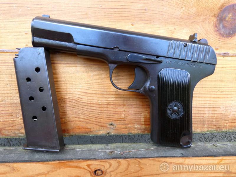 Opis: Dostawa: 17-18 czerwiec: Grudziądz, Ostróda, Elbląg, Gdańsk, Słupsk, Koszalin, Szczecin, Gorzów Wlkp., Piła. 28-29 czerwiec: Łódź, Warszawa, Radom, Lublin, Rzeszów, Kraków, Katowice, Wrocław,, Leszno, Poznań ! Pistolet TT wz. 33 kal. 7,62x25, pistolet samopowtarzalny produkcji ZSRR, konstrukcji Fiodora Tokariewa. Broń w oryginalnej oksydzie, zgodna numerycznie. Stan - bardzo dobry. Przewód lufy w stanie bardzo dobrym, W komplecie dwa magazynek 8 nabojowe, smycz, wycior i kabura, Lokalizacja Brzoza pod Bydgoszczą. Tel. 505-006-586., www.olimp-arms.com