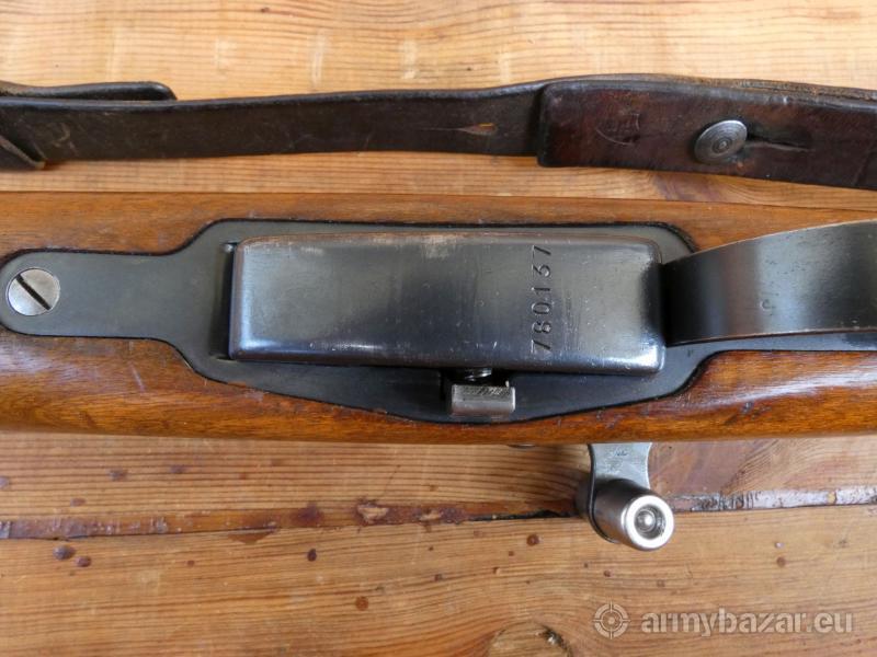 Opis: Dostawa: 20 sierpnia Elbląg, Gdańsk i okolice, 30-31 sierpień: Łódź, Warszawa, Radom, Lublin, Rzeszów, Kraków, Katowice, Wrocław,, Leszno, Poznań ! Karabin powtarzalny Schmidt-Rubin K31 kal. 7,5x55. Broń w oryginalnej oksydzie, zgodna numerczynie. Przewód lufy w stanie bardzo dobrym - lustro. W komplecie jeden oryginalny magazynek, pas i nasadka na lufę. Posiadamy więcej sztuk do wyboru. Lokalizacja Brzoza pod Bydgoszczą. Tel. 505-006-586.- www.olimp-arms.com
