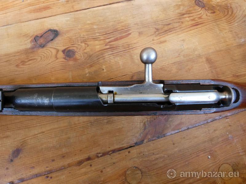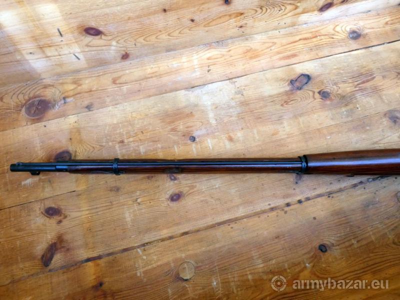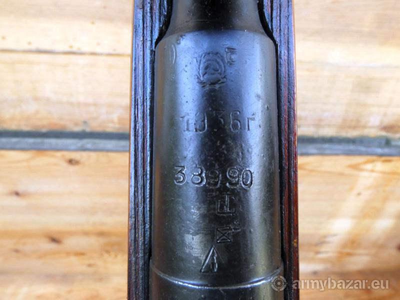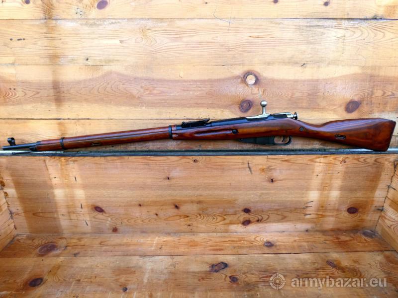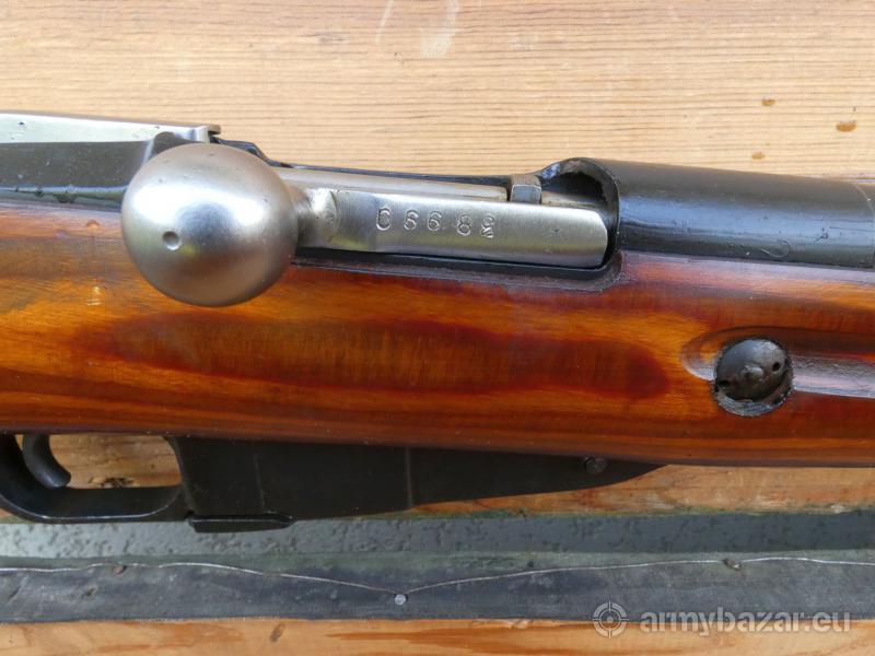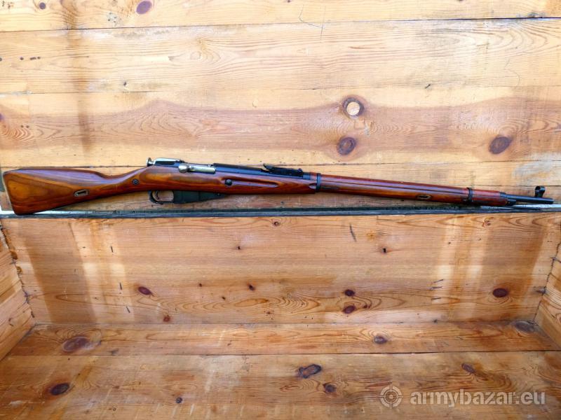 Opis: Dostawa: 11 czerwiec: Grudziądz, Ostróda, Elbląg, Gdańsk, Słupsk, Koszalin, Szczecin, Gorzów Wlkp., Piła. 28-29 czerwiec: Łódź, Warszawa, Radom, Lublin, Rzeszów, Kraków, Katowice, Wrocław,, Leszno, Poznań ! Karabin powtarzalny Mosin 91/30 kal. 7,62x54R. Podstawowa broń rosyjskiej piechoty podczas II wojny światowej. Wyprodukowany w 1943 r. w zakładach w Iżewsku. Komora okrągła. Przewód lufy lustro, gwint osty, bardzo dobrze widoczny. W komplecie bagnet i zestaw do czyszczenia widoczny na ostatnim zdjęciu. Karabin w oryginalnej powłoce, przeszedł powojenny remont w ZSRR. Posiadamy więcej sztuk do wyboru. Lokalizacja Brzoza pod Bydgoszczą. Tel. 505-006-586. - www.olimp-arms.com
