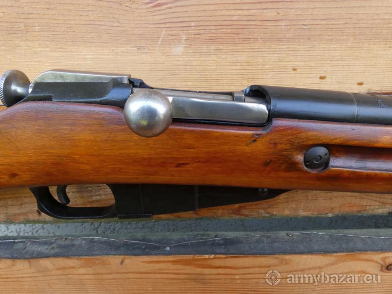 Opis: Dostawa: 17-18 czerwiec: Grudziądz, Ostróda, Elbląg, Gdańsk, Słupsk, Koszalin, Szczecin, Gorzów Wlkp., Piła. 28-29 czerwiec: Łódź, Warszawa, Radom, Lublin, Rzeszów, Kraków, Katowice, Wrocław,, Leszno, Poznań ! Karabin powtarzalny Mosin 91/30 kal. 7,62x54R. Podstawowa broń rosyjskiej piechoty podczas II wojny światowej. Wyprodukowany w 1943 r. w zakładach w Iżewsku. Komora okrągła. Przewód lufy lustro, gwint osty, bardzo dobrze widoczny. W komplecie bagnet i zestaw do czyszczenia widoczny na ostatnim zdjęciu. Karabin w oryginalnej powłoce, przeszedł powojenny remont w ZSRR. Posiadamy więcej sztuk do wyboru. Lokalizacja Brzoza pod Bydgoszczą. Tel. 505-006-586. - www.olimp-arms.com