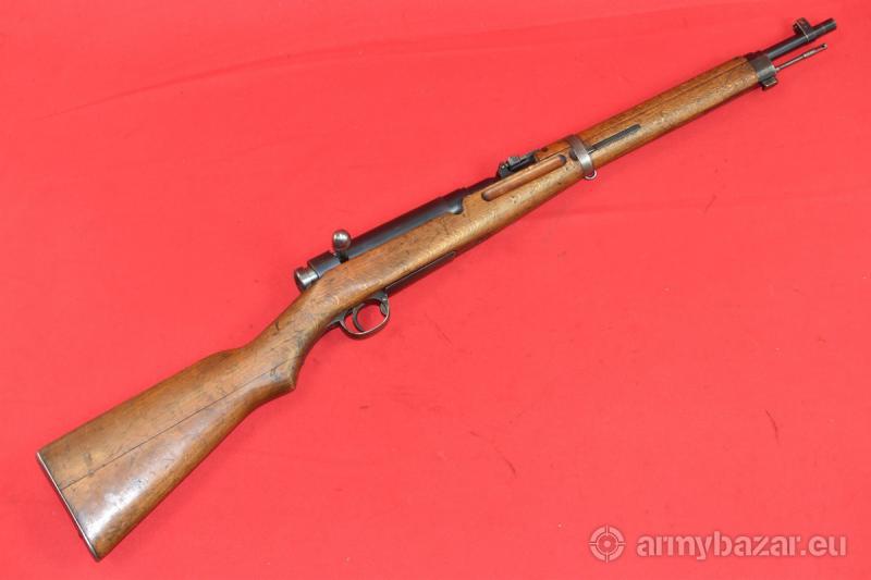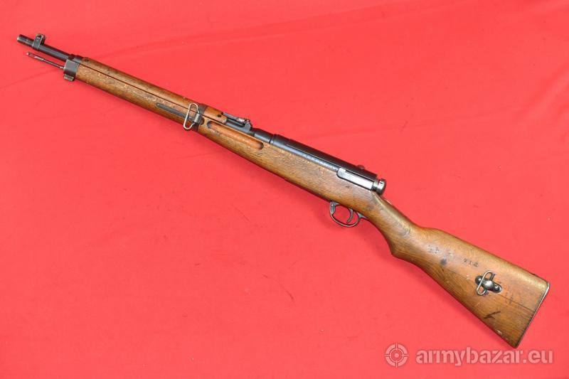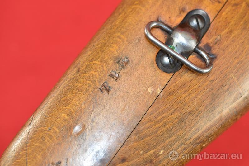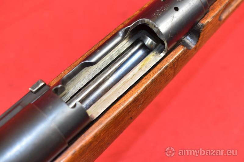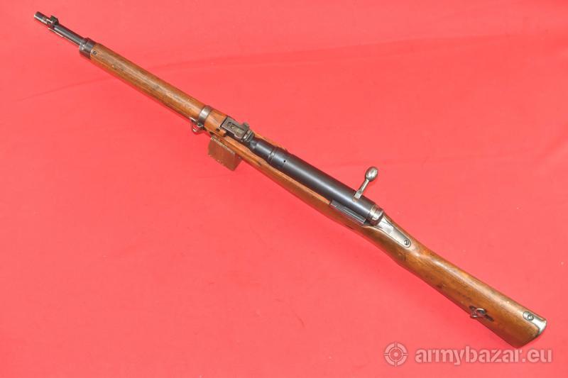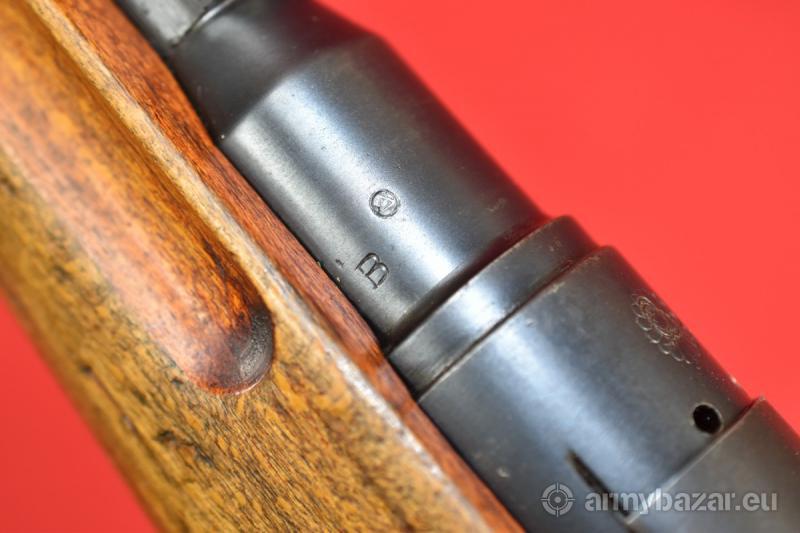 Opis: #7371 Karabinek Arisaka M1905 (Type 38) kal. 6,5 Jap. Numer seryjny wskazuje na produkcję w arsenale Tokio (Koishikawa). Wszystko oryginalne - łącznie z pięknie zachowaną oksydą. Uwagę zwraca wnętrze komory zamkowej w stanie "białym". Podczas ewentualnych remontów broni ten detal nie był już ponownie polerowany - więc jest to pierwsza oznaka, że w tym wypadku oksyda jest fabryczna. Zamek również fabrycznie w stanie "białym".Przewód lufy: gwint ostry i kompletny na całej długości - można go określić jako bardzo dobry, lekko używany. BROŃ DOWOZIMY NA TERENIE CAŁEGO KRAJU - RAZ W MIESIĄCU