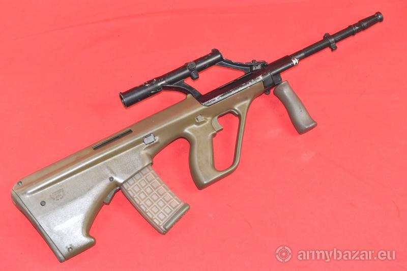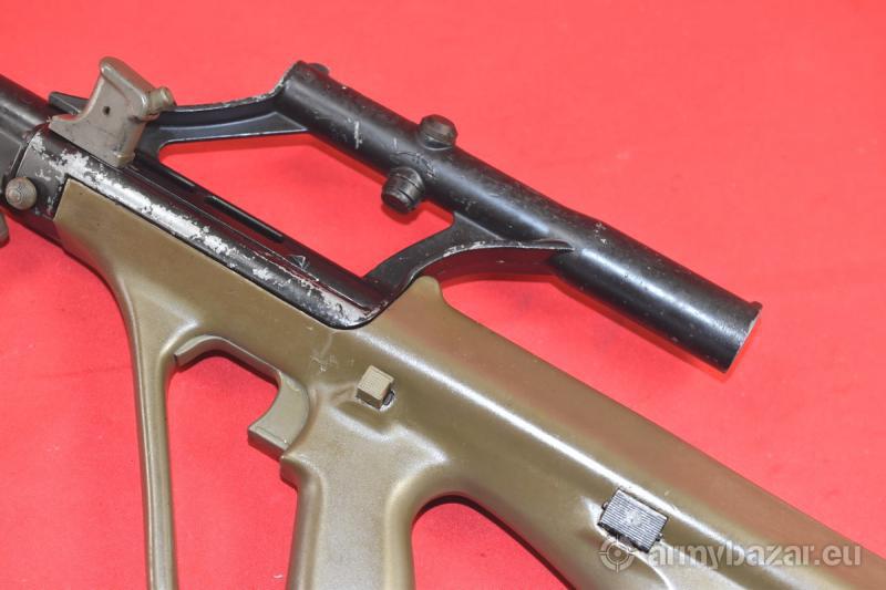 Opis: #7386 Karabinek Steyr AUG A1 kal. 223Rem. Produkcja malezyjska (SME) z lat dziewięćdziesiątych - na licencji austriackiej firmy Steyr. Stan - bardzo dobry. Więcej noszone, niż strzelane - dlatego stan "organów wewnętrznych" jest po prostu świetny. Na elementach metalowych obecna czarna, fabryczna farba. Obecnie w pewnej części wytarta (głównie z obudowy celownika optycznego - który służył często za uchwyt). Trwałość tej farby była bardzo krótka. Brak rdzy czy rdzawego nalotu - nigdy czegoś takiego tutaj nie było. Przewód lufy w stanie idealnym. BROŃ DOWOZIMY NA TERENIE CAŁEGO KRAJU - RAZ W MIESIĄCU