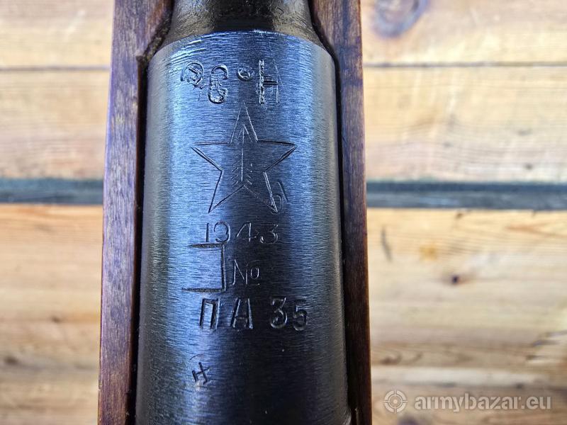 Opis: DOSTAWA PRZEZ CAŁĄ POLSKĘ ! Karabin powtarzalny Mosin 91/30 kal. 7,62x54R. Podstawowa broń rosyjskiej piechoty podczas II wojny światowej. Wyprodukowany w 1943 r. w zakładach w Tule jako wersja snajperska/ wyborowa. Świadczą o tym ślady montażowe w komorze po optyce, podwójne oznaczenia kontrolne "CH" oraz "C" w kółku oraz kolba z uzupełnionym drewnem w miejscu po optyce. Rzadka wersja Mosina EX Snajpera, który nie został poddany przywracaniu do wersji pierwotnej. Przewód lufy w stanie bardzo dobrym - lustro. Lokalizacja Brzoza pod Bydgoszczą. Tel. 790-280-454 - www.olimp-arms.com, https://t.me/olimparms