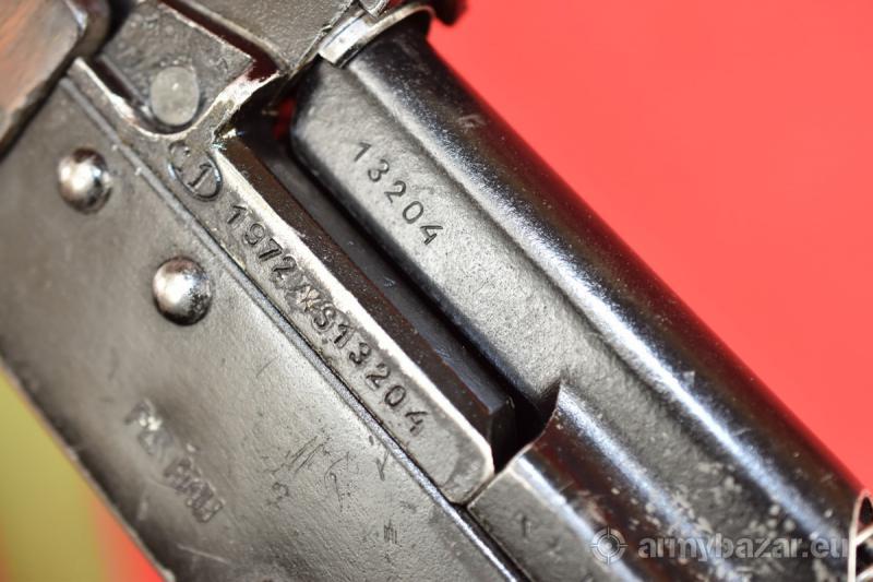 Opis: #7417 Karabinek AKMS wyprodukowany w Radomiu (w roku 1972). Kal. 7,62x39. Egzemplarz oznaczony "PL AMW" poniżej numeru seryjnego na komorze zamkowej - przy złożonej kolbie oznaczenie to nie jest widoczne. Zakupiony przez naszą firmę bezpośrednio w AMW (bez żadnych pośredników czy wspólników). Ponieważ miał lufę w złym stanie - dokonaliśmy jej wymiany na inną - ale także produkcji radomskiej! Przewód lufy: w stanie bardzo dobrym, chrom zachowany doskonale. Egzemplarz przerobiony na ogień samopowtarzalny - dostępny na zezwolenie kolekcjonerskie oraz sportowe. BROŃ DOWOZIMY NA TERENIE CAŁEGO KRAJU.