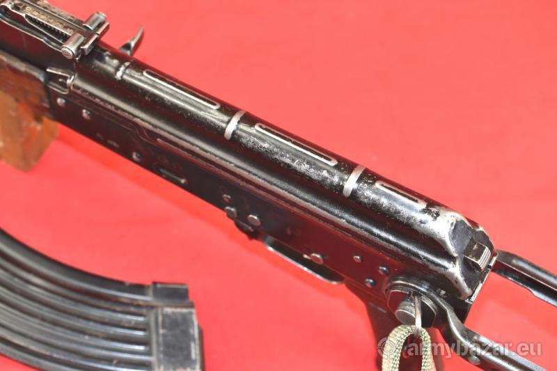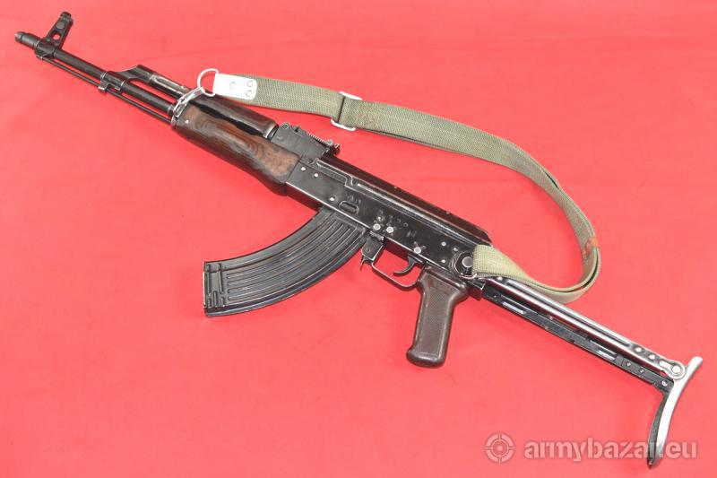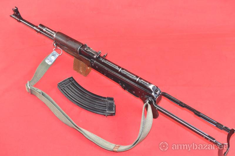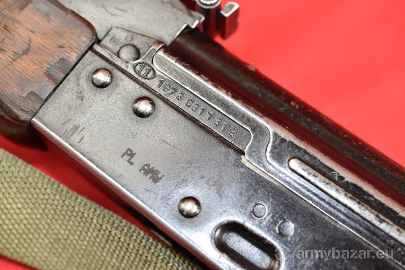 Opis: #7478 Karabinek AKMS wyprodukowany w Radomiu (w roku 1973). Kal. 7,62x39. Egzemplarz oznaczony "PL AMW" poniżej numeru seryjnego na komorze zamkowej - przy złożonej kolbie oznaczenie to nie jest widoczne. Zakupiony przez naszą firmę bezpośrednio w AMW (bez żadnych pośredników czy wspólników). Ponieważ miał lufę w złym stanie - dokonaliśmy jej wymiany na inną - ale także produkcji radomskiej! Uszkodzone elementy wymagające wymiany - zostały wymienione - ale na części również produkcji radomskiej. Przewód lufy: w stanie bardzo dobrym, chrom zachowany doskonale. BROŃ DOWOZIMY NA TEREN