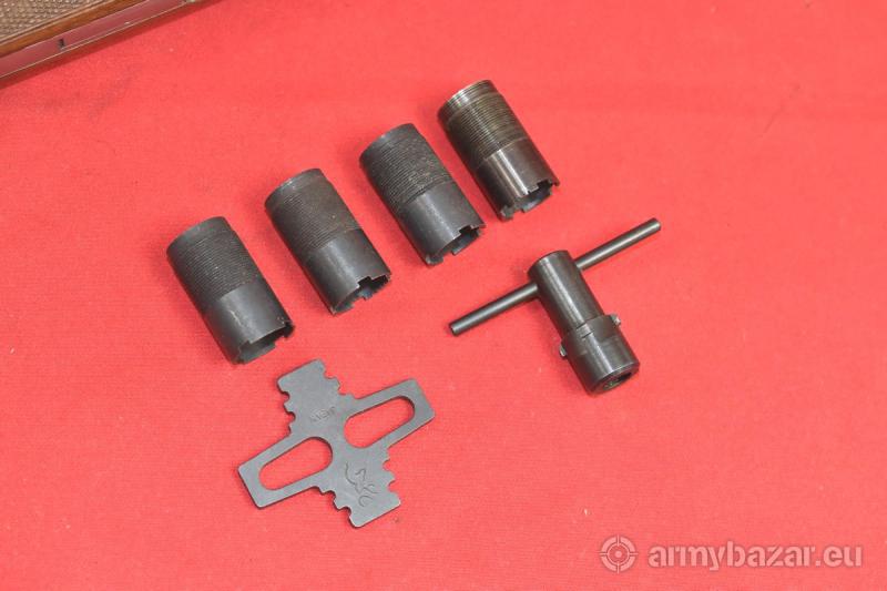 Opis: #7511 Bok Browning 325 Grade 1 Kal. 12/70. Model typowo sportowy, jednospustowy. Egzemplarz w stanie bardzo dobrym, wykazuje ślady niezbyt intensywnej eksploatacji. Żadnych luzów - przy zamykaniu i otwieraniu czuć nadal spory opór - broń jest doskonale spasowana. Kolba wykończona fabrycznie, oksyda fabryczna - nic tu nie było remontowane, poprawiane itd. Czoki wymienne - oprócz założonych w lufach są do dyspozycji cztery sztuki widoczne na zdjęciach - wraz z kluczami. Egzemplarz sprawdzony i wypróbowany przez rusznikarza. Przewody obu luf: lustro. BROŃ DOWOZIMY NA TERENIE CAŁEGO KRAJU - RAZ W MIESIĄCU