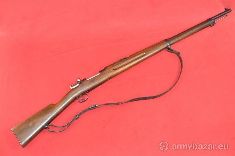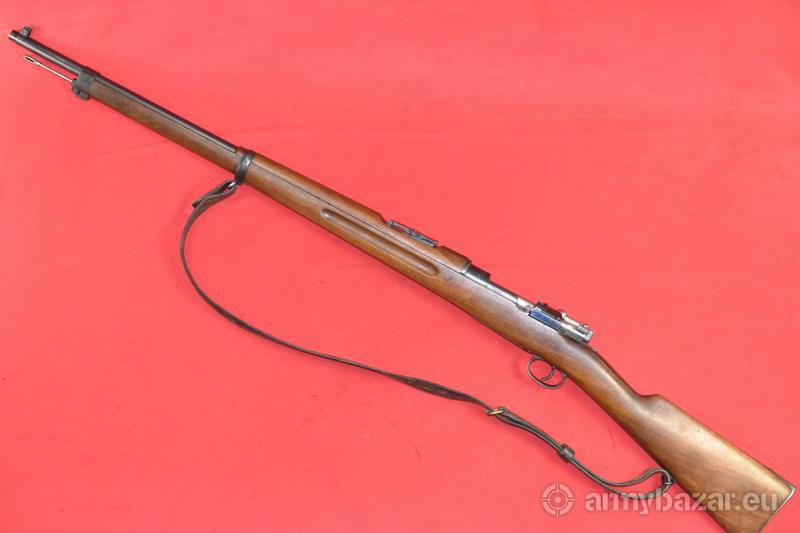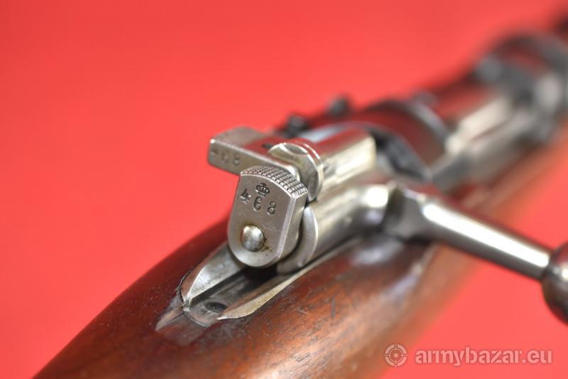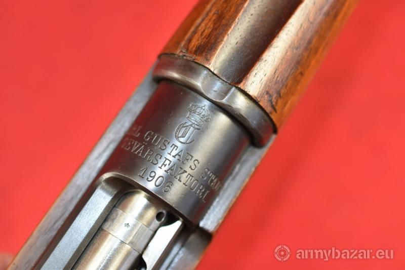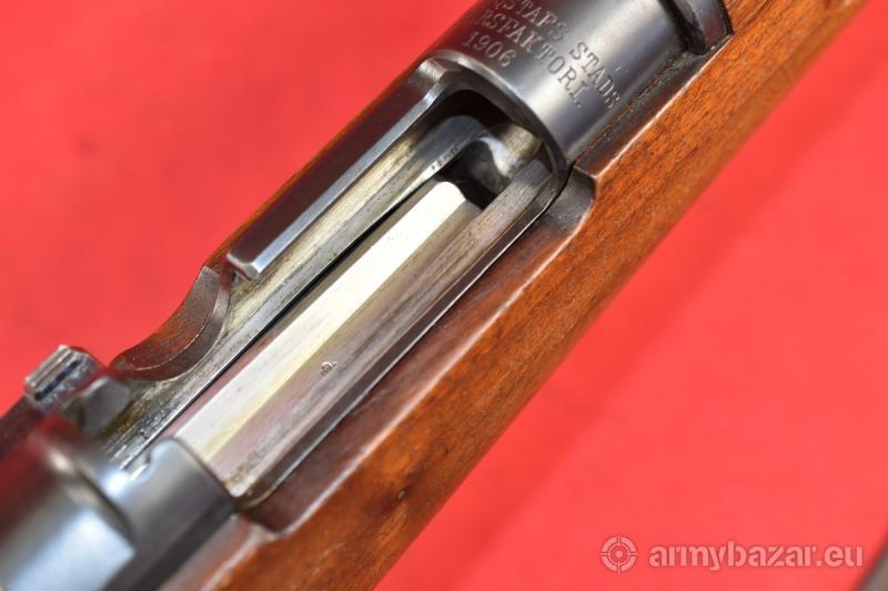 Opis: #7513 Karabin Mauser m/96 - etatowy karabin armii szwedzkiej. Kaliber 6,5x55. Produkcja arsenału Carl Gustaf, rok produkcji 1906. Egzemplarz używany, w stanie co najmniej dobrym, zgodny numerycznie. Oryginalna szczerbina została wymieniona na sportową, mikrometryczną szczerbinkę szwedzkiej firmy SM Sikte ASJ. Na kolbie brak dysku mosiężnego z danymi technicznymi broni. Egzemplarz sprawdzony i wypróbowany przez rusznikarza. W komplecie oryginalny pas nośny. Przewód lufy: fabryczny. BROŃ DOWOZIMY NA TERENIE CAŁEGO KRAJU - RAZ W MIESIĄCU