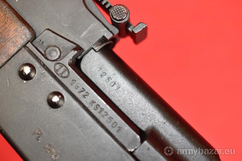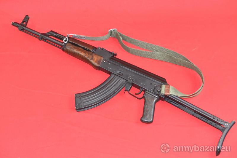 Opis: #7581 Karabinek AKMS wyprodukowany w Radomiu w roku 1972. Kal. 7,62x39. Egzemplarz oznaczony "PL AMW" poniżej numeru seryjnego na komorze zamkowej - przy złożonej kolbie oznaczenie to nie jest widoczne. Zakupiony przez naszą firmę bezpośrednio w AMW (bez żadnych pośredników czy wspólników). Ponieważ miał lufę w złym stanie - dokonaliśmy jej wymiany na inną - ale także produkcji radomskiej! Uszkodzone elementy wymagające wymiany - zostały wymienione - ale na części również produkcji radomskiej. Przewód lufy: w stanie bardzo dobrym, chrom zachowany doskonale. BROŃ DOWOZIMY NA TERENIE CAŁEGO KRAJU