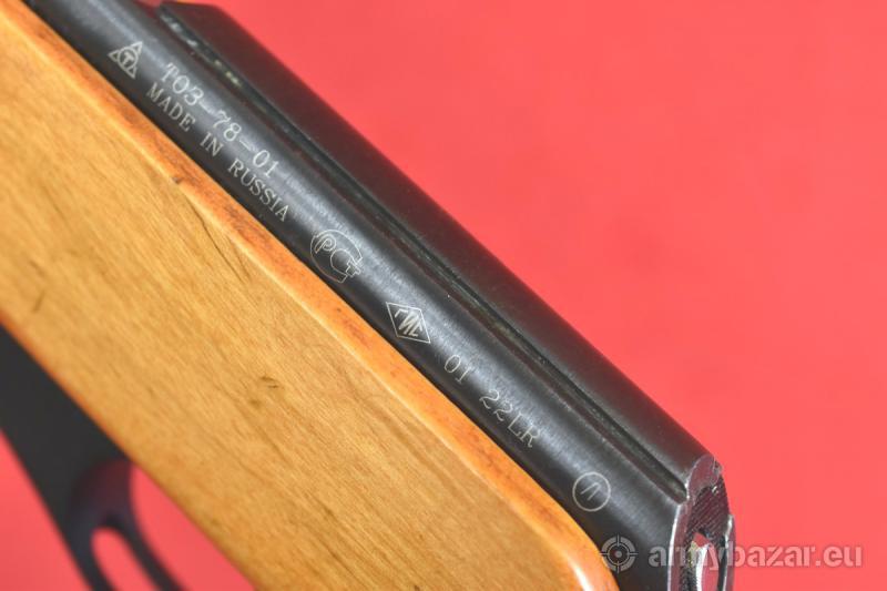 Opis: #7592 Karabinek sportowy bocznego zapłonu TOZ 78-01 kal. 22lr. Produkcja rosyjska fabryki w Tule. Oznaczenia umieszczone na komorze zamkowej wskazują na rok produkcji 2001. Stan bardzo dobry, praktycznie fabryczny. Jedyne ślady używania (albo tylko ślady transportu / składowania) - to niewielkie przetarcia oksydy na podstawie muszki - patrz zdjęcia. Egzemplarz fabrycznie wyposażony przyrządy celownicze mechaniczne. Poprzedni właściciel dołożył do niego celownik optyczny Edenberg 3-9x40, który można w każdej chwili zdjąć i nie pozostanie po nim żaden ślad. Przewód lufy: fabryczny. BROŃ DOWOZIMY NA TERENIE CAŁEGO KRAJU - RAZ W MIESIĄCU