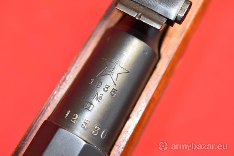 Opis: #7628 Karabin Mosin 1891/30 wyprodukowany w roku 1935 w zakładach w Tule. Kaliber 7,62x54R. Oferowany egzemplarz - jak zresztą praktycznie wszystkie egzemplarze radzieckich Mosinów 91/30 dostępne obecnie na rynku - przeszedł powojenny remont w arsenałach ZSRR. Na kolbie obecny jest stempel arsenału Bałaklija (obecnie obwód charkowski, Ukraina) - w postaci przekreślonego na skos kwadratu.Przewód lufy: jasny, czysty - gwint ostry i kompletny na całej długości. Brak wżerów, brak zmatowień. BROŃ DOWOZIMY NA TERENIE CAŁEGO KRAJU - RAZ W MIESIĄCU