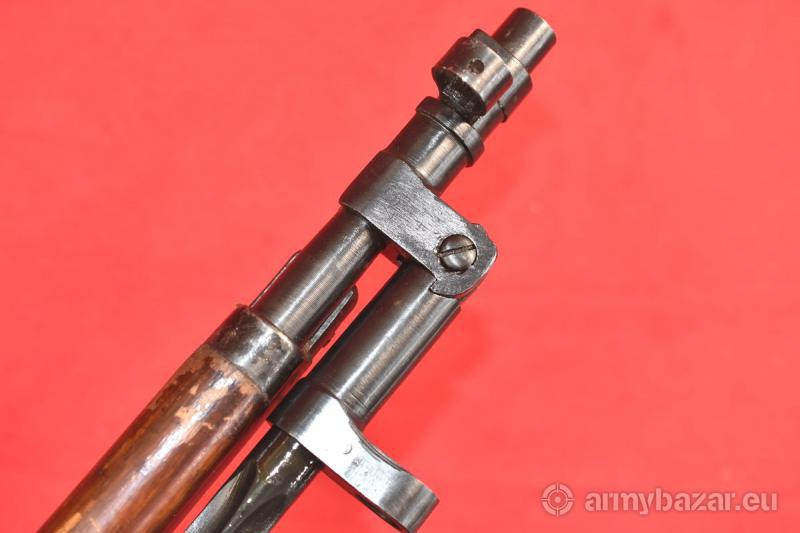 Opis: #7632 Karabin Mosin 1891/30/43 wyprodukowany w roku 1943 w zakładach Iżewsk. Kaliber 7,62x54R. Podstawowa broń radzieckiej piechoty podczas II wojny światowej. Stan bardzo dobry - oferowany egzemplarz - jak zresztą praktycznie wszystkie egzemplarze Mosinów 91/30 dostępne na rynku - przeszedł powojenny remont w arsenałach ZSRR. FABRYCZNIE WYPOSAŻONY W EKSPERYMENTALNY BAGNET Wz. 1943 - ZASTOSOWANY W FABRYCE IŻEWSK W CIĄGU 1943 ROKU - I WYPRODUKOWANY W NIEWIELKIEJ LICZBIE EGZEMPLARZY. Przewód lufy: po prostu w stanie FABRYCZNYM, IDEALNYM. Nie jest po prostu możliwe, by znaleźć Mosina z lepszą lufą niż w tym wypadku! BROŃ DOWOZIMY NA TERENIE CAŁEGO KRAJU - RAZ W MIESIĄCU