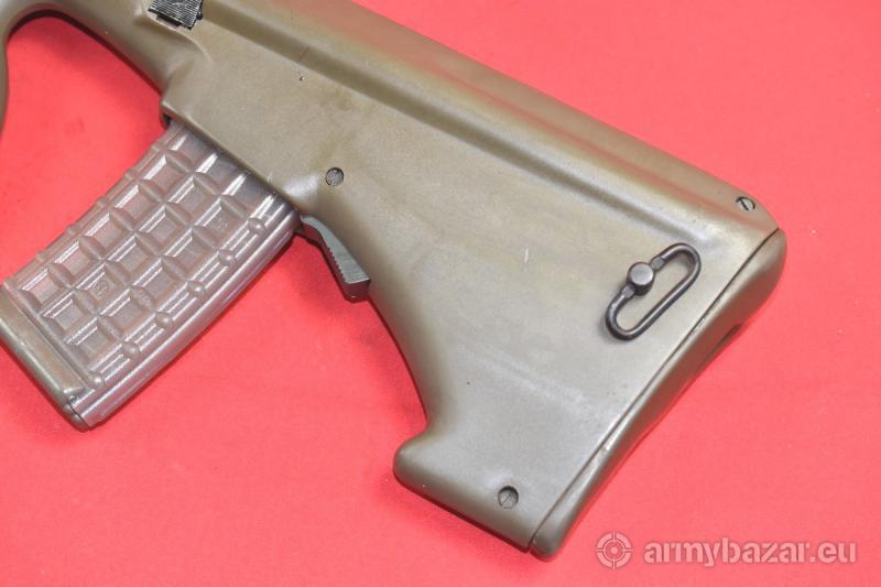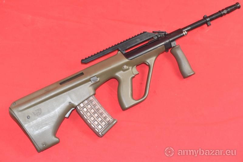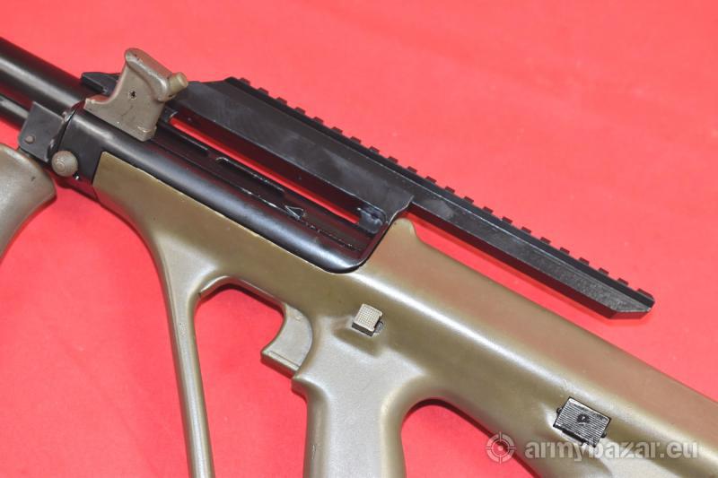 Opis: #7634 Karabinek Steyr AUG kal. 223Rem. Produkcja malezyjska z lat dziewięćdziesiątych - na licencji austriackich zakładów Steyr. Stan - bardzo dobry. Więcej noszone, niż strzelane - dlatego stan "organów wewnętrznych" jest po prostu świetny. Egzemplarz przerobiony - fabryczna optyka została usunięta, na jej miejsce umieszczono szynę Picatinny. Nowy lakier na komorze zamkowej - na lufie oryginalny. Przewód lufy w stanie idealnym. BROŃ DOWOZIMY NA TERENIE CAŁEGO KRAJU - RAZ W MIESIĄCU